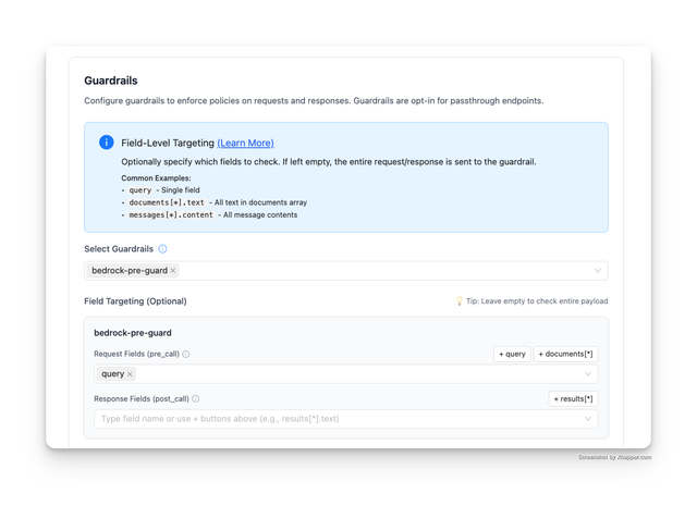 | Supported Guardrails | All LiteLLM guardrails (Bedrock, Aporia, Lakera, etc.) |